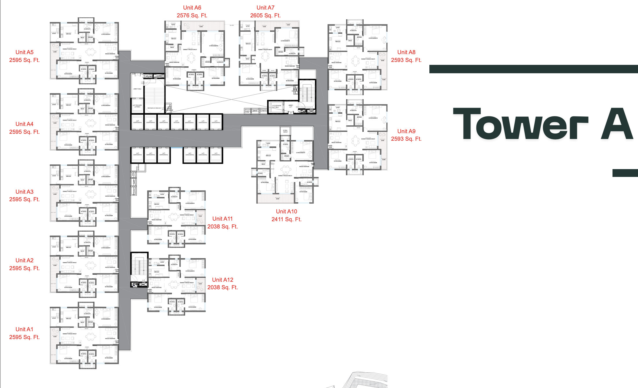 3) Premium 3 BHK units, size range ~ 1,900 – 2,500 sqft